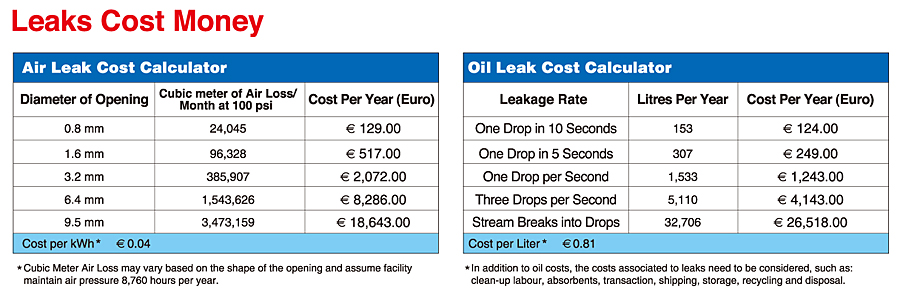 不利因素:泄漏。 一旦产生泄漏,便会损失气体、液体,浪费能源,降低生产力,有损名誉。 后果: 增加保修、清洁、处理、停工、维修成本。例如,若漏气可被监听到,那么该漏气每年消耗的能源浪费量可致公司损失1,000美元。 |